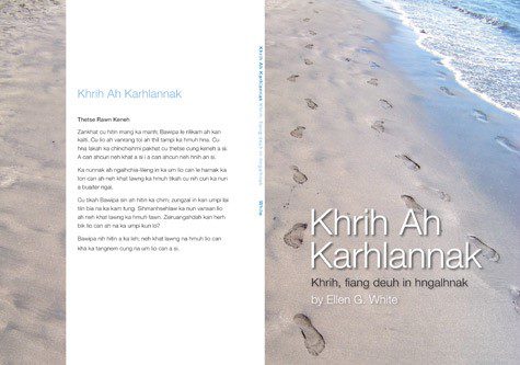 Steps to Christ in a tribal Myan language. This book has been translated into many languages — and now there's one more! We featured the poem Footprints on the back.