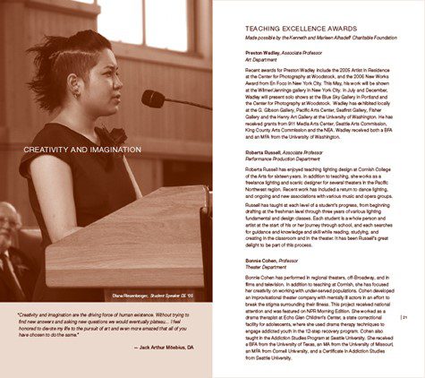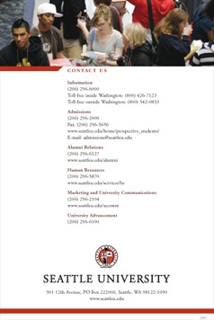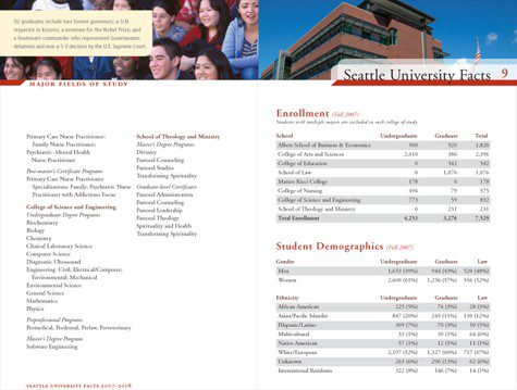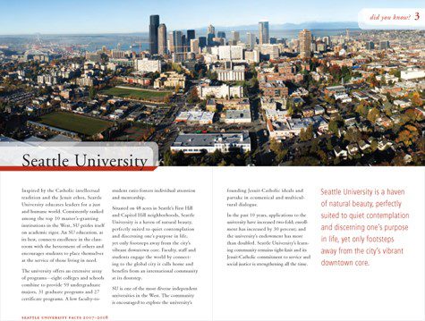 Seattle University annual report: Global Education. At Seattle U each year's report covers a different theme relevant to university and social issues. As the lead designer on this project, I had a fun time contacting different colleges/departments for images relevant to their international programs. I worked collaboratively with the Communications team for concepts and production. The report received great feedback for its timeliness, concept and quality writing