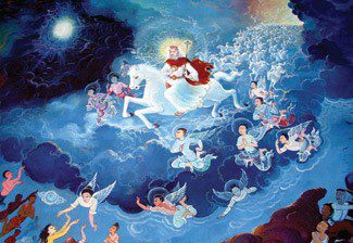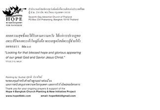 Postcards for Hope for Bangkok. Biblical description of Jesus coming in the clouds with thousands of angels.